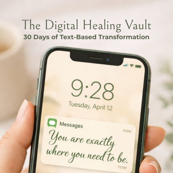 The Digital Healing Vault is our signature 30-day text-based guide for grounding your mind, calming anxiety, and strengthening boundaries through short, supportive messages you can return to anytime.