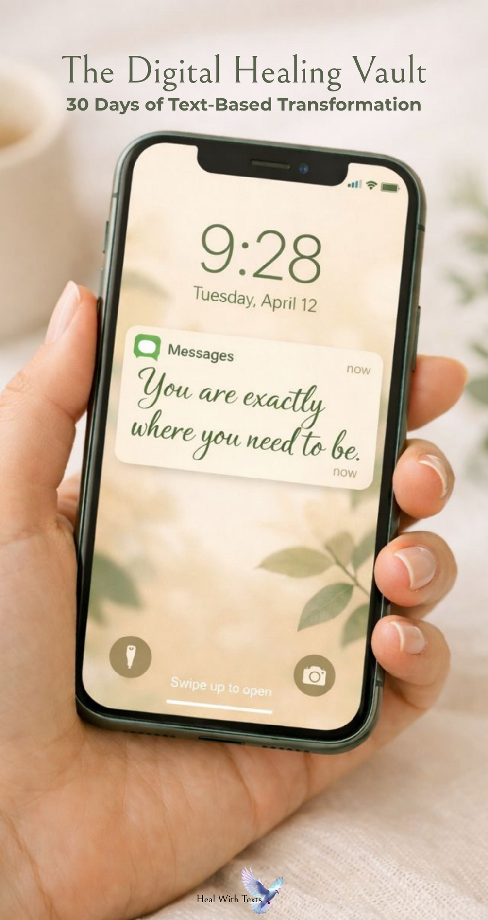 The Digital Healing Vault is a calming, text-based healing guide designed to feel like supportive messages saved in your phone — short, grounding, and powerful.