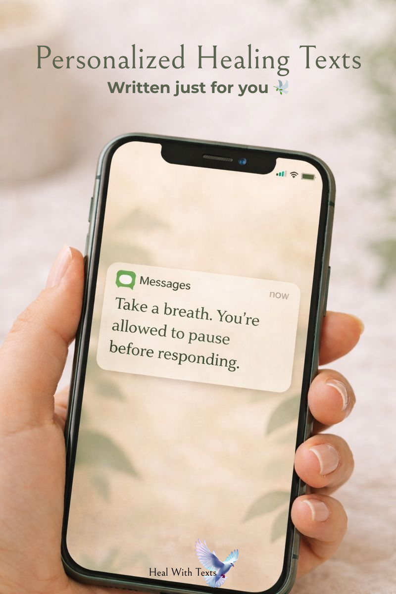 You’ll receive personalized healing texts, boundary scripts, and grounding reminders designed to help you respond without spiraling or over-explaining.